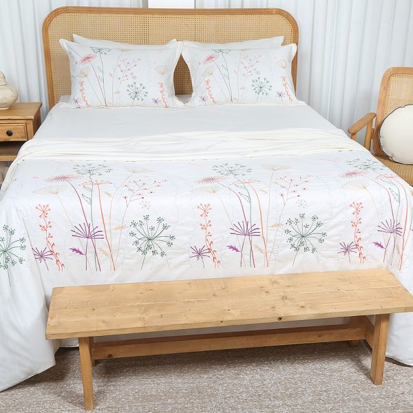 ست کاور لحاف بزرگسال گلدوزی دو نفره شش تکه بروجرد طرح کلاریسا رنگ سفید