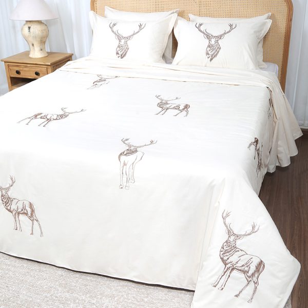 ست کاور لحاف بزرگسال گلدوزی دو نفره شش تکه بروجرد طرح گوزن رنگ خام شویی