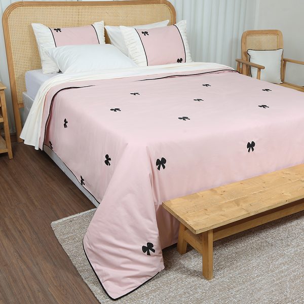 ست کاور لحاف بزرگسال گلدوزی دو نفره شش تکه بروجرد طرح شاپرک رنگ صورتی