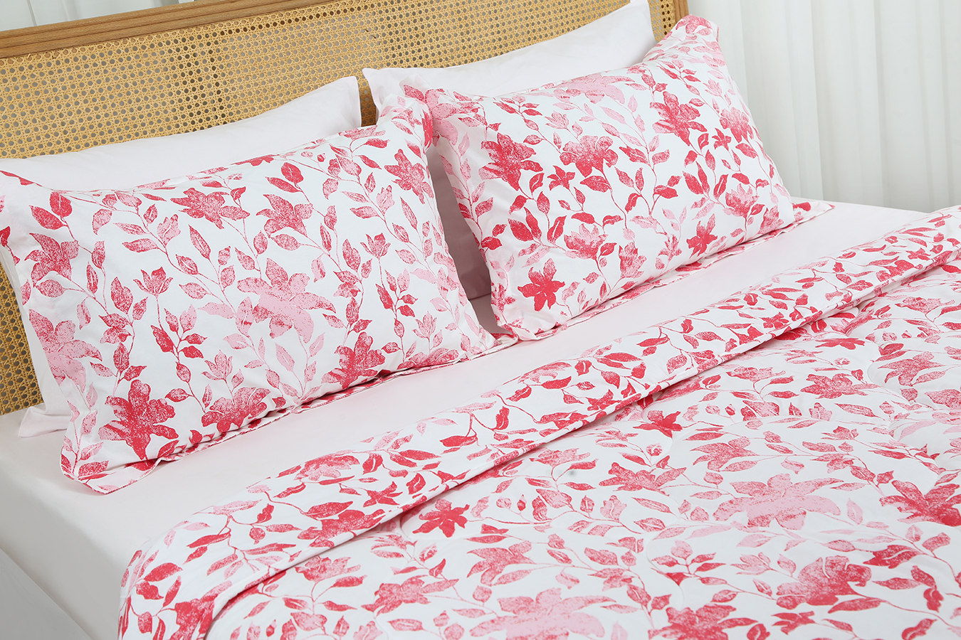 ست لحاف بزرگسال یک نفره سه تکه 90 بروجرد طرح هتلی رنگ صورتی
