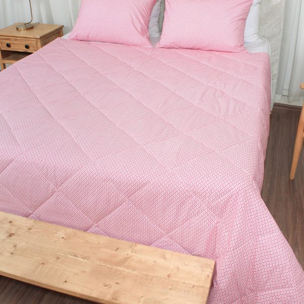 ست لحاف بزرگسال یک نفره سه تکه 90 بروجرد طرح هتلی رنگ صورتی
