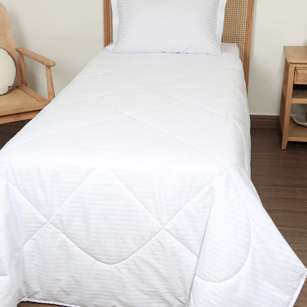 ست لحاف بزرگسال یک نفره سه تکه 90 بروجرد طرح هتلی باند پهن رنگ سفید