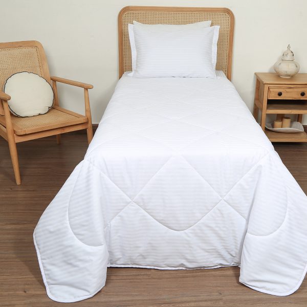 ست لحاف بزرگسال یک نفره سه تکه 90 بروجرد طرح هتلی باند پهن رنگ سفید