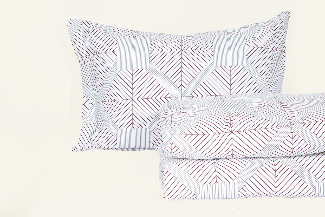 ست لحاف بزرگسال دو نفره سه تکه 180 بروجرد طرح خطی 2 رنگ قرمز