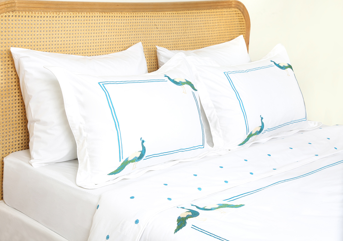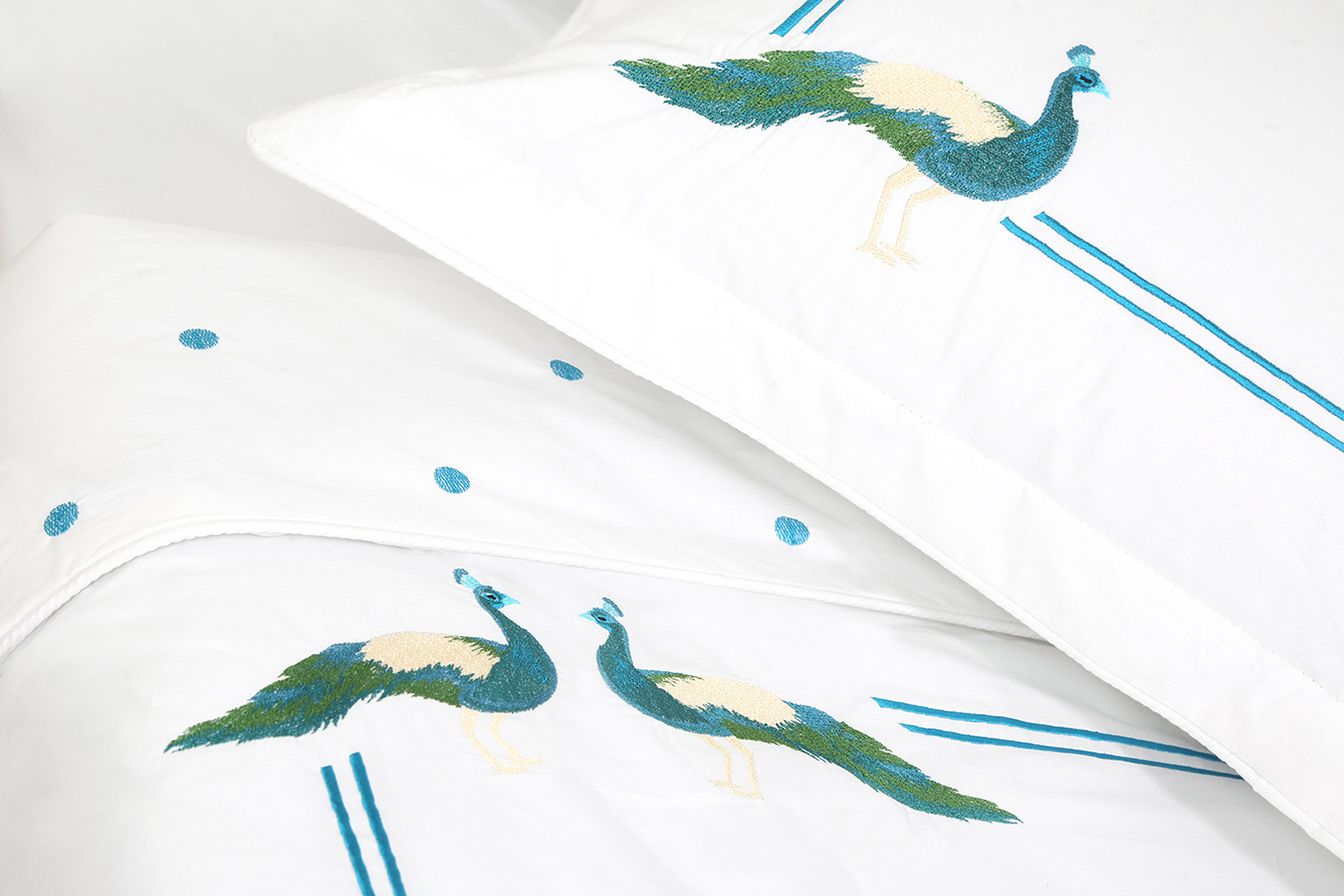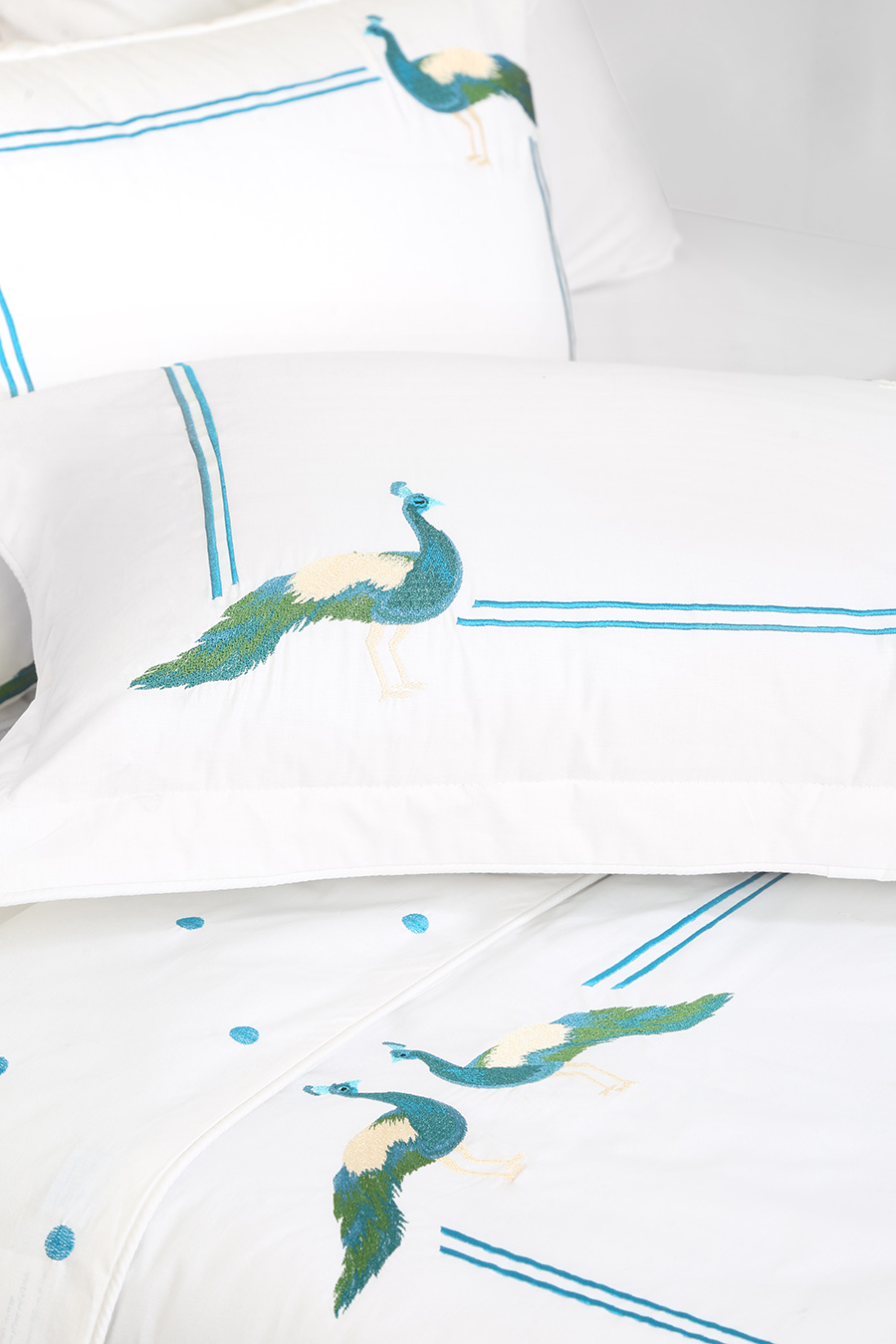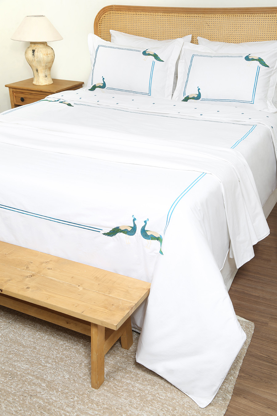 ست لحاف وکاور بزرگسال گلدوزی دو نفره هفت تکه بروجرد طرح طاووس رنگ سفید