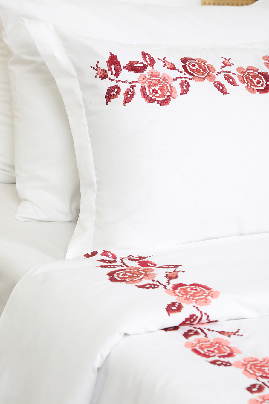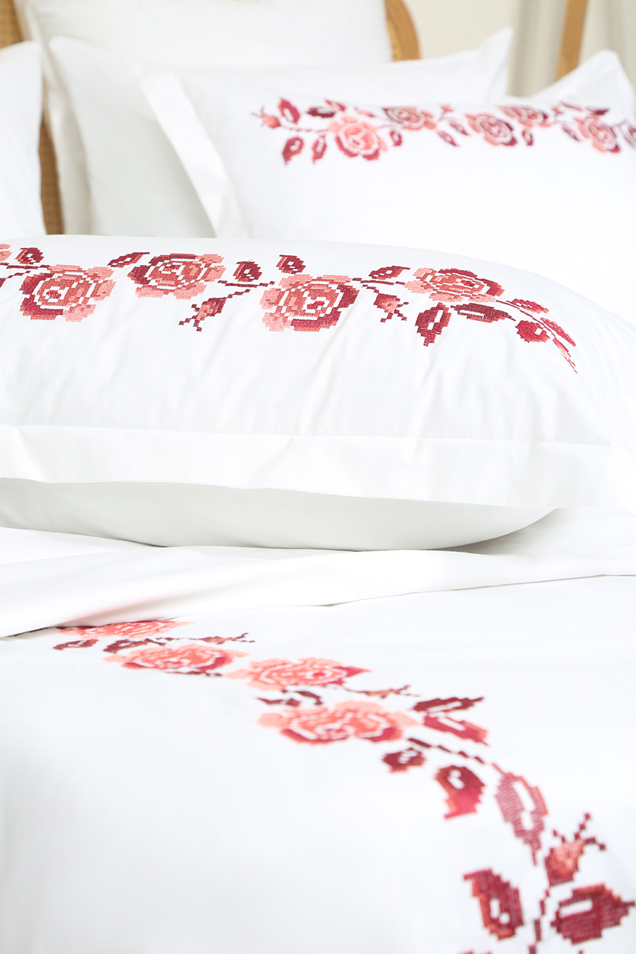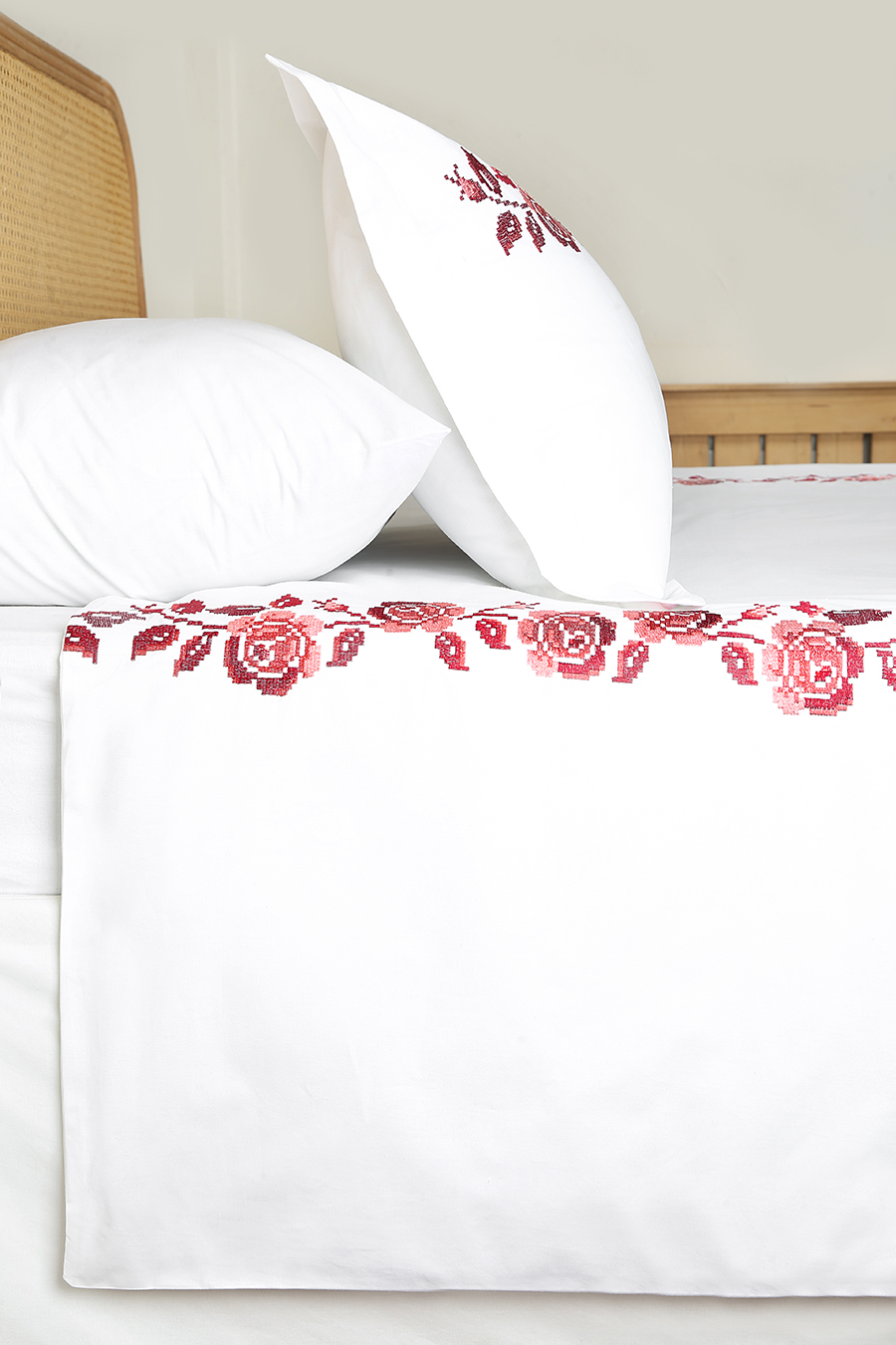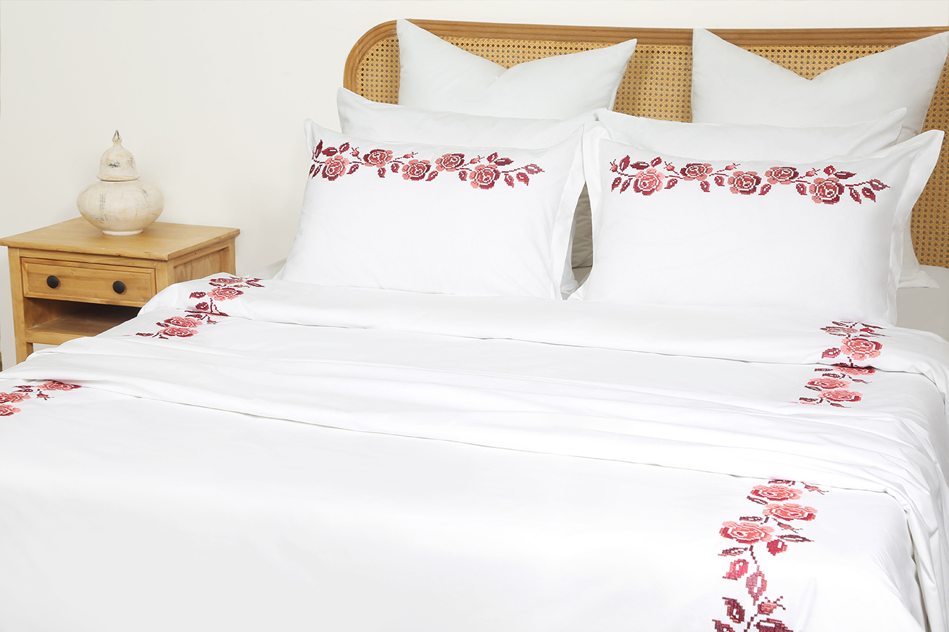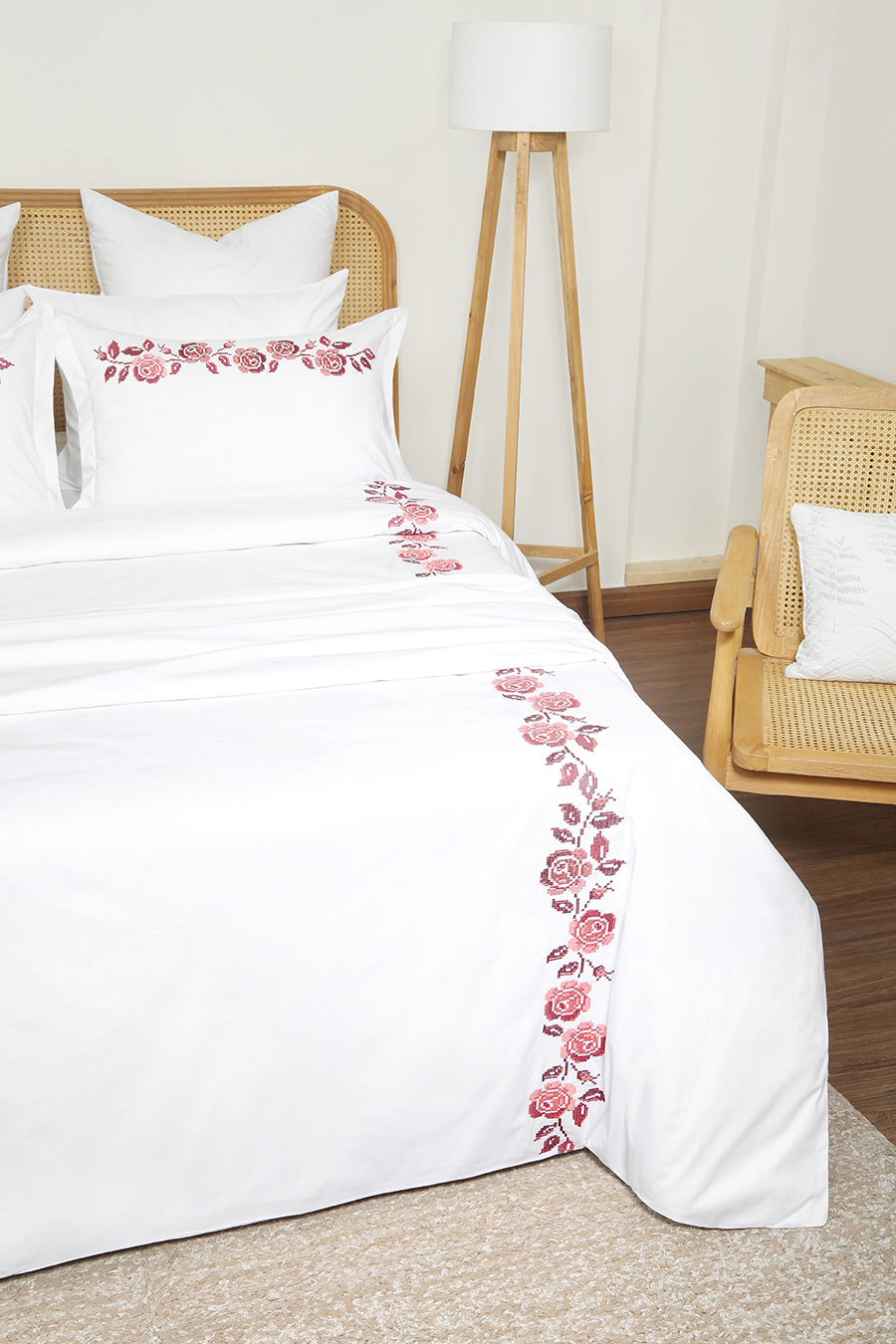 ست لحاف وکاور بزرگسال گلدوزی یک نفره هفت تکه بروجرد طرح رودولف رنگ سفید
