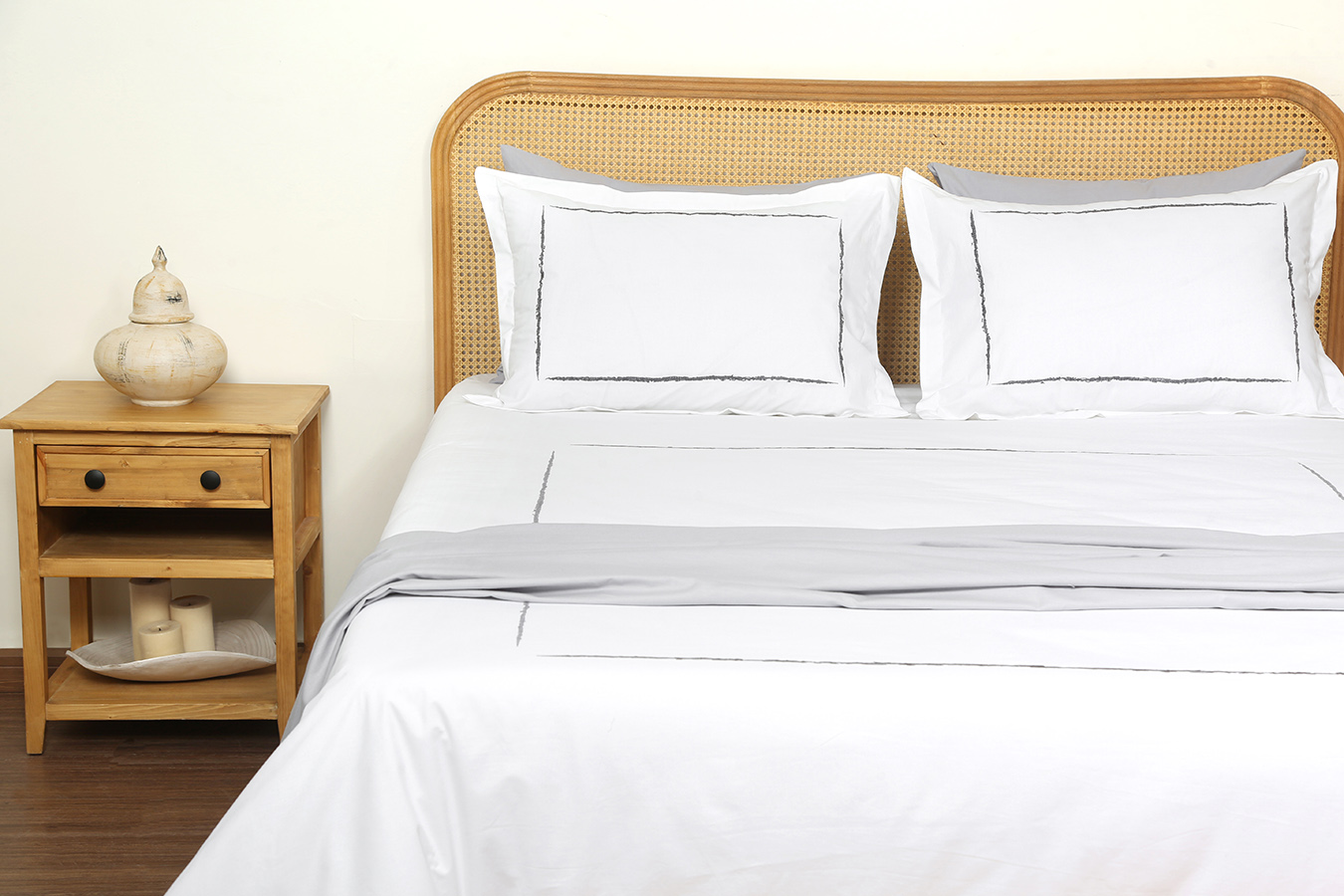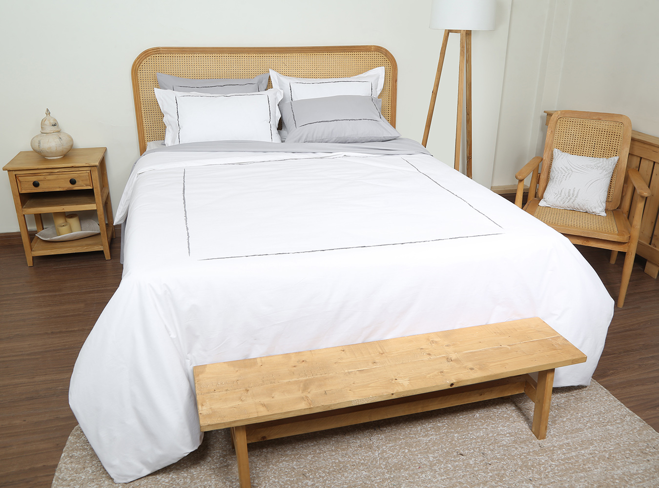 ست لحاف وکاور بزرگسال گلدوزی دو نفره هفت تکه بروجرد طرح لاین رنگ سفید