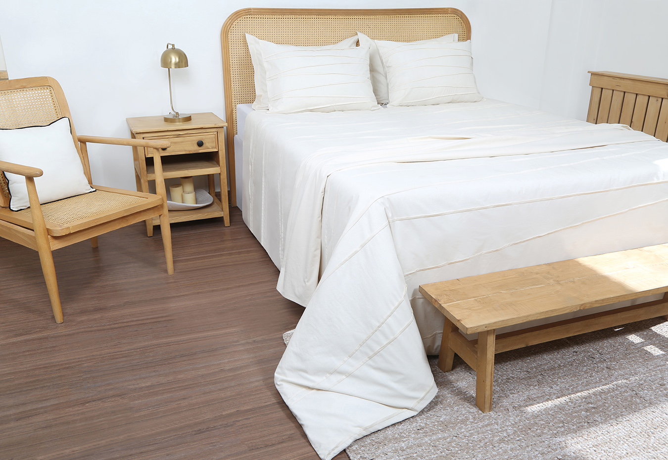 ست لحاف بزرگسال یک نفره سه تکه 90 بروجرد طرح هتلی باند پهن رنگ سفید
