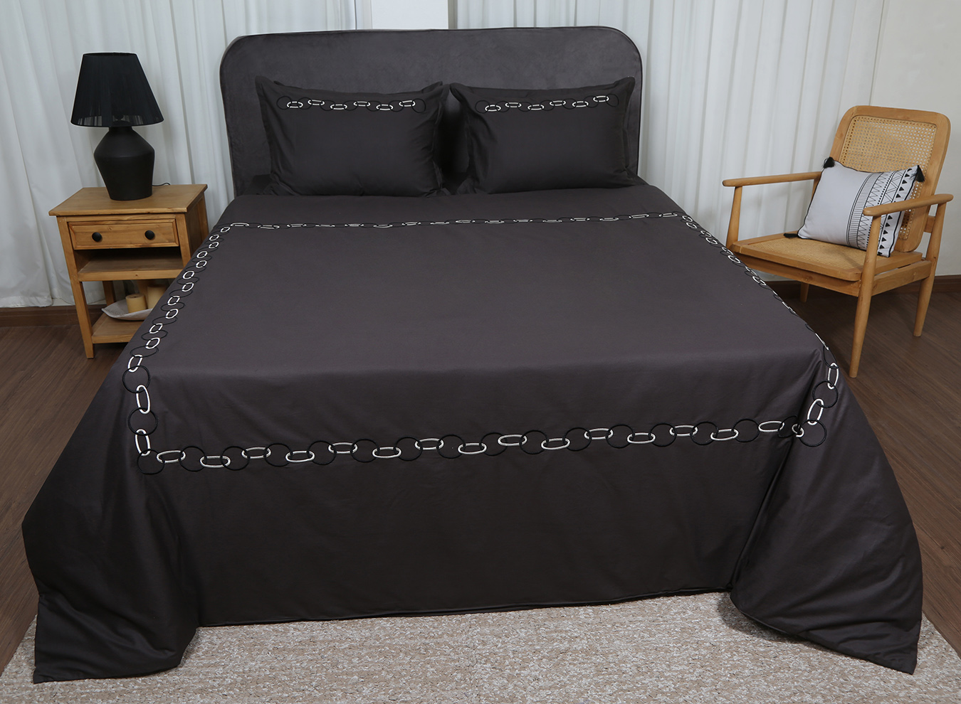 ست لحاف وکاور بزرگسال گلدوزی دو نفره هفت تکه بروجرد طرح سزار رنگ نوک مدادی