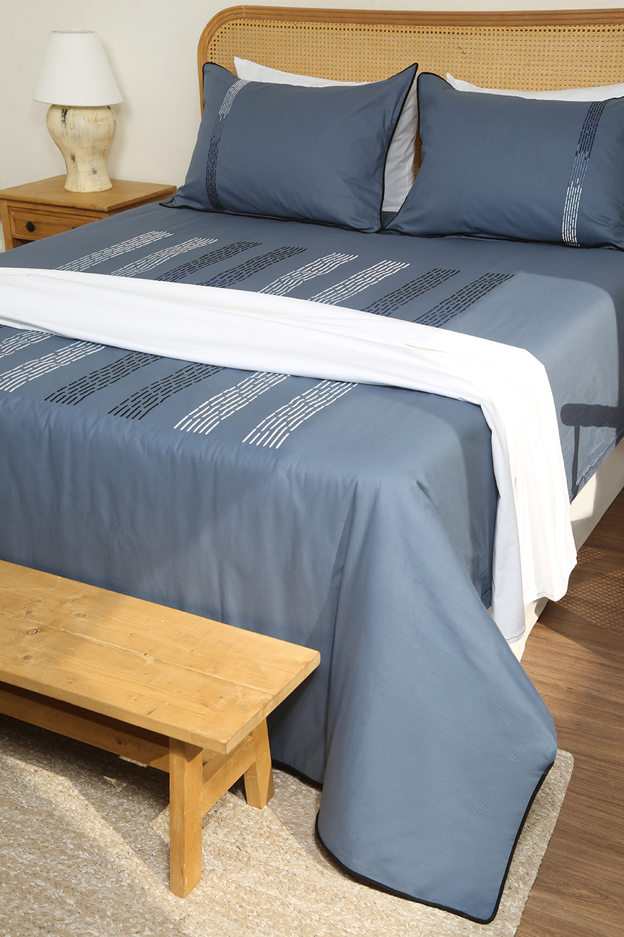 ست لحاف وکاور بزرگسال گلدوزی دو نفره هفت تکه بروجرد طرح لراتو رنگ آبی نفتی