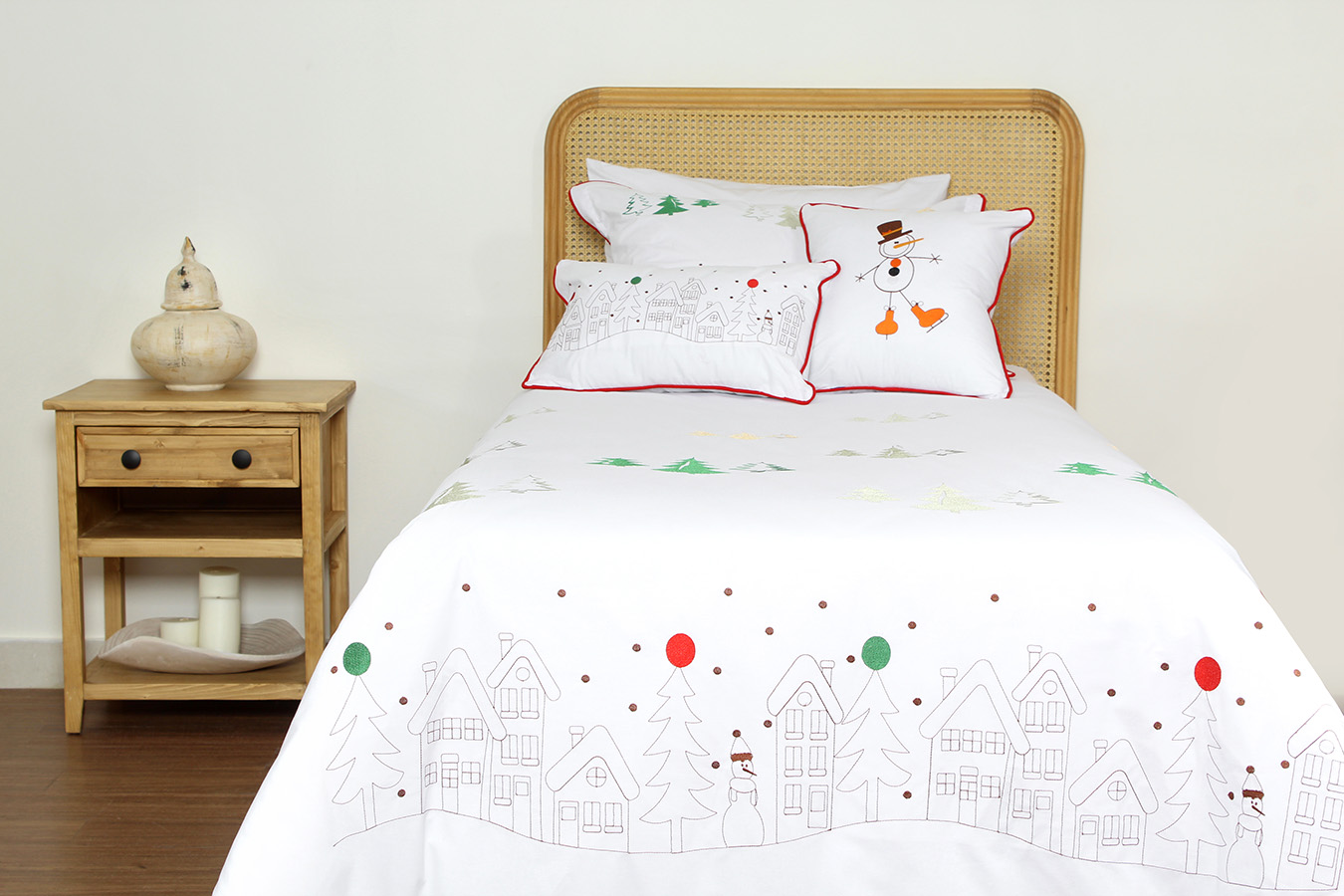 ست لحاف وکاور بزرگسال گلدوزی یک نفره هفت تکه بروجرد طرح رودولف رنگ سفید