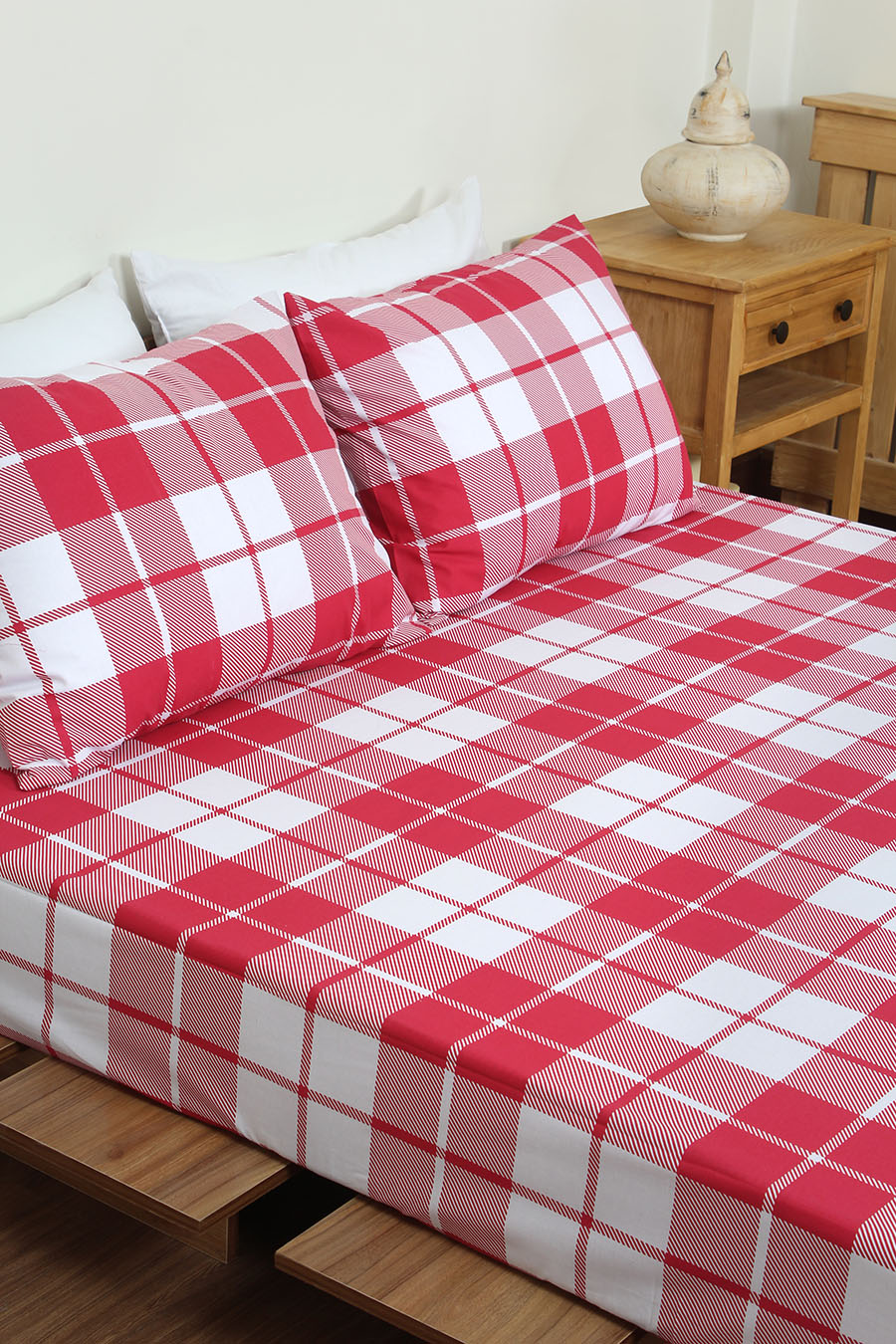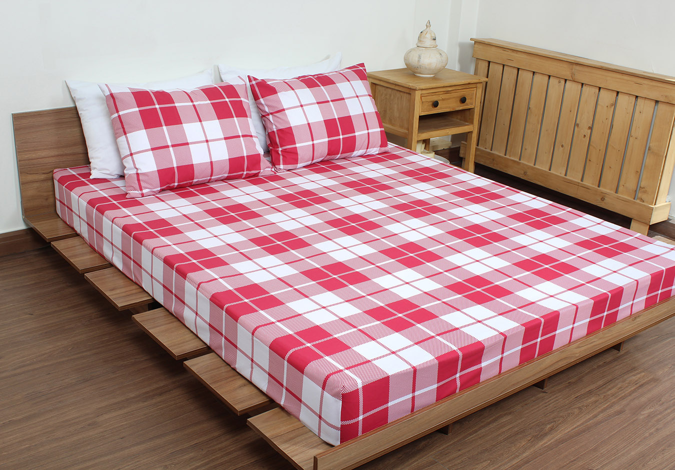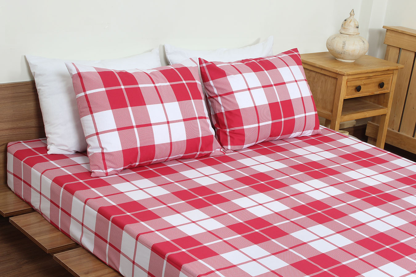 ملحفه نیم ست یک نفره دو تکه 90 بروجرد طرح تیامو رویه رنگ قرمز