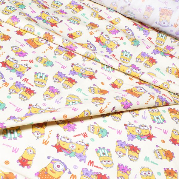 پارچه ملحفه پنبه پلی استر عرض 150 بروجرد طرح مینیون لوکس کد 01