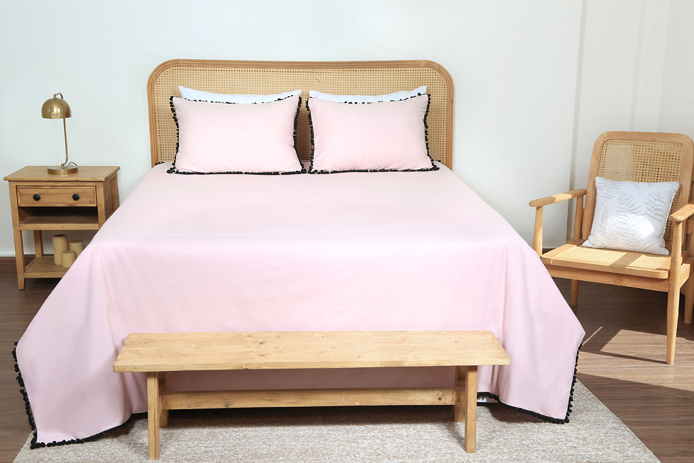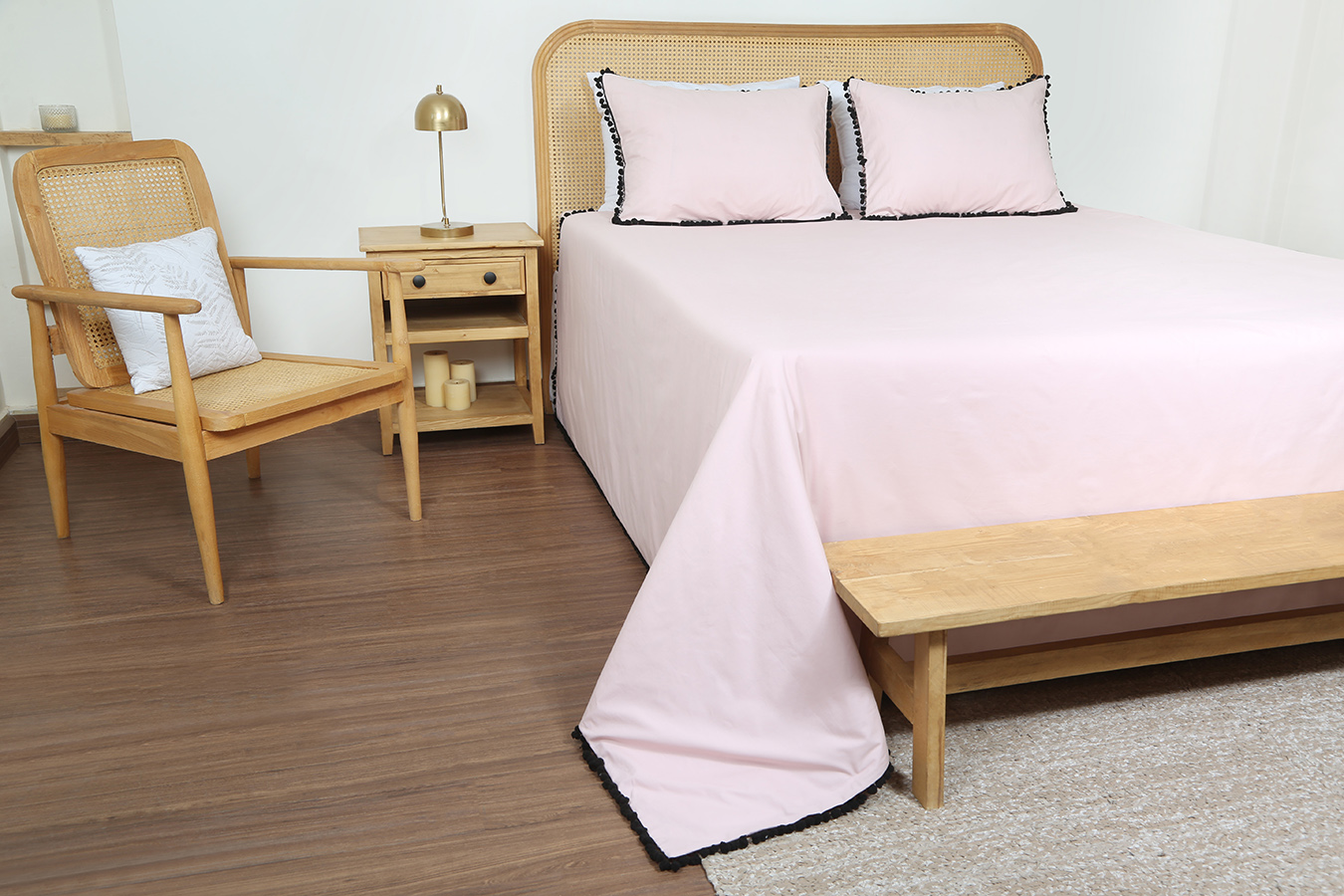 کاور تمام ست نوار دوزی دو نفره چهار تکه 180 بروجرد طرح ملودی رنگ صورتی چرک