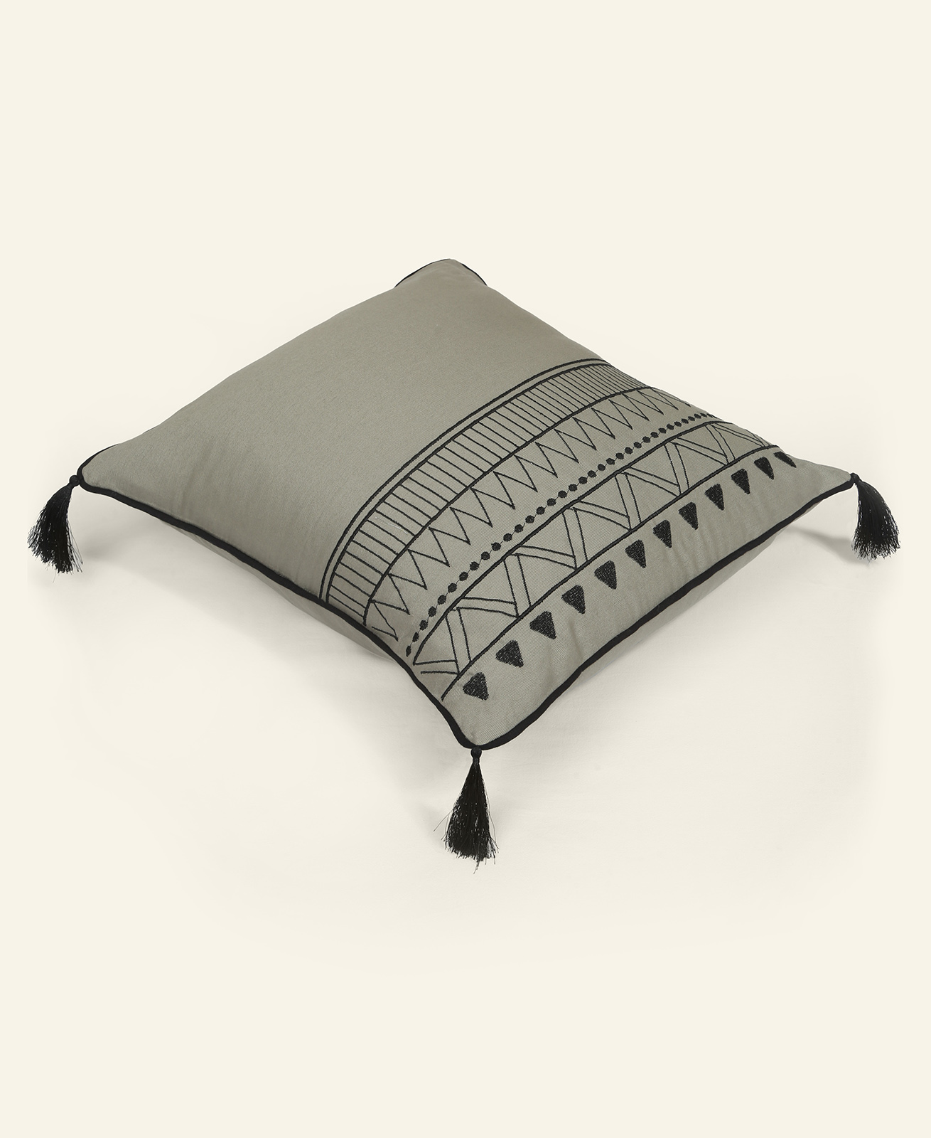 کوسن گلدوزی طرح کمند 40*40 بروجرد رنگ طوسی