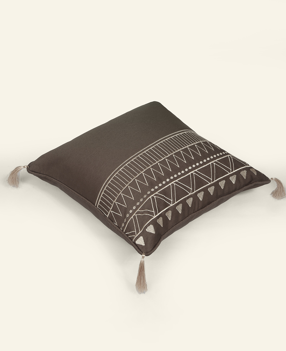 کوسن گلدوزی طرح کمند 40*40 بروجرد رنگ قهوه ای روشن