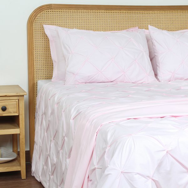 ست لحاف وکاور بزرگسال استار دو نفره هفت تکه بروجرد طرح دیاموند رنگ صورتی روشن