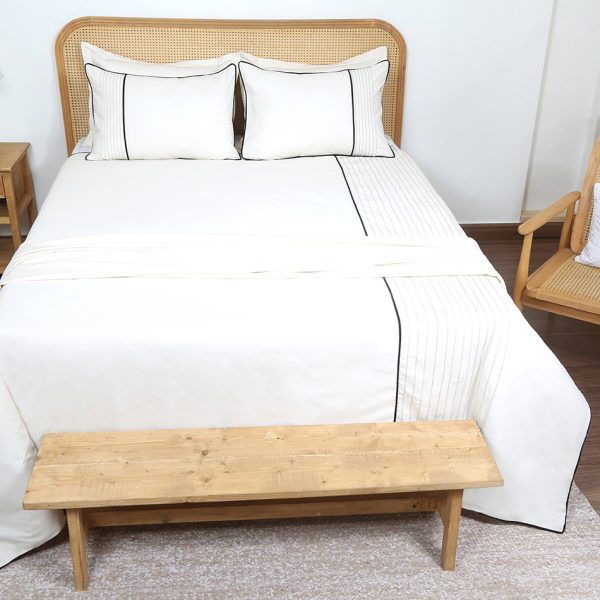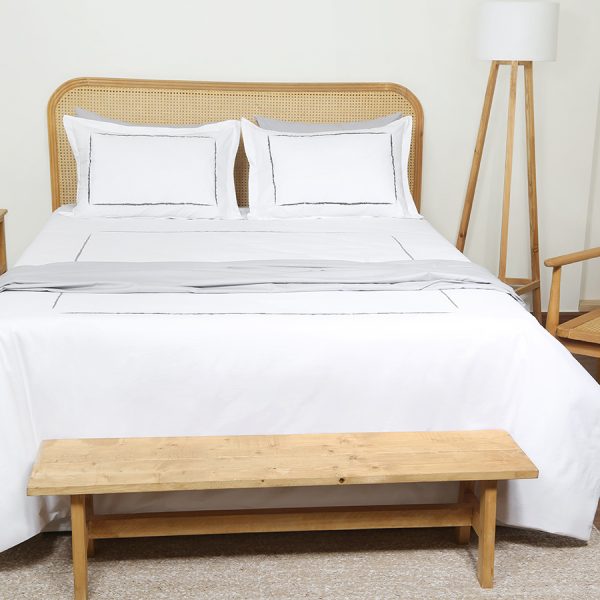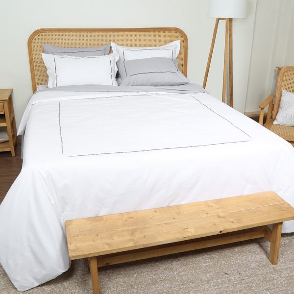 ست لحاف وکاور بزرگسال گلدوزی دو نفره هفت تکه بروجرد طرح لاین رنگ سفید