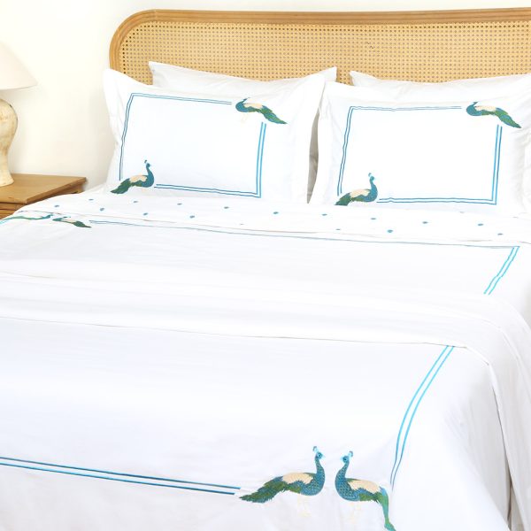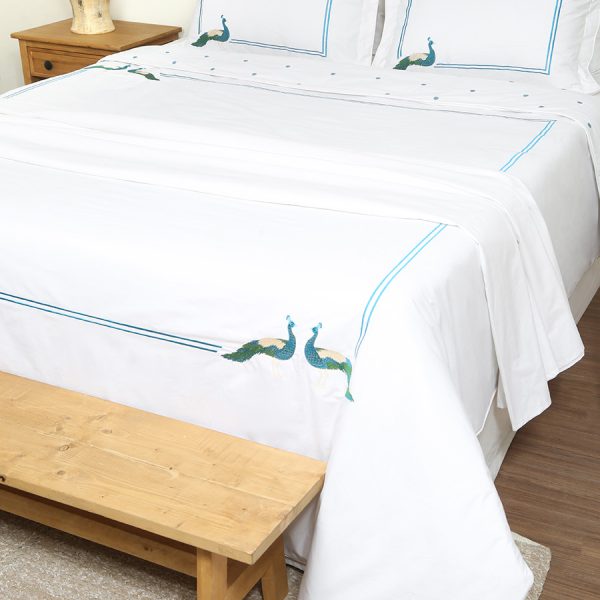 ست لحاف وکاور بزرگسال گلدوزی دو نفره هفت تکه بروجرد طرح طاووس رنگ سفید
