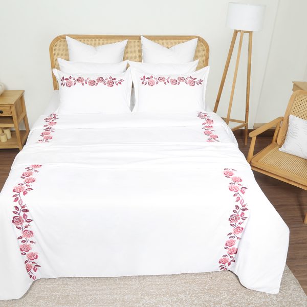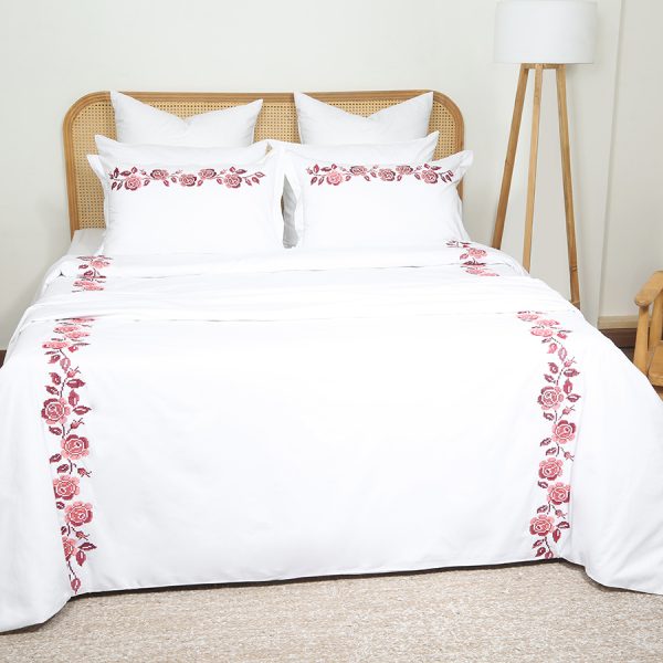 ست لحاف وکاور بزرگسال گلدوزی دو نفره هفت تکه بروجرد طرح فلاور رنگ سفید