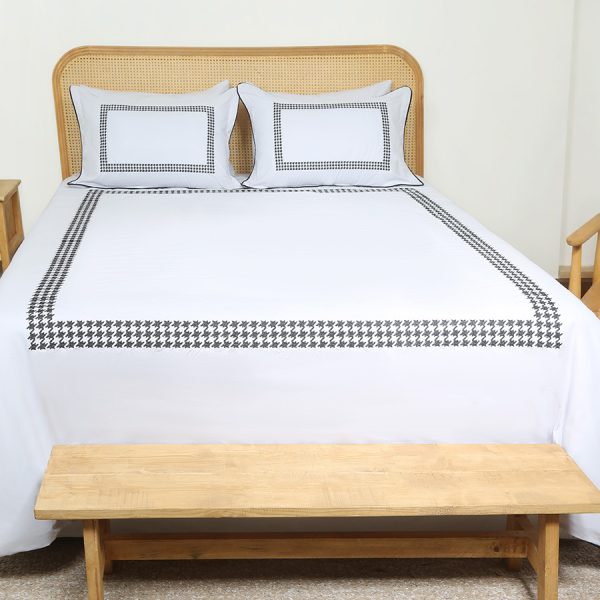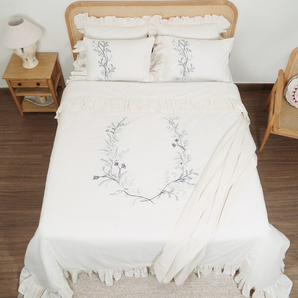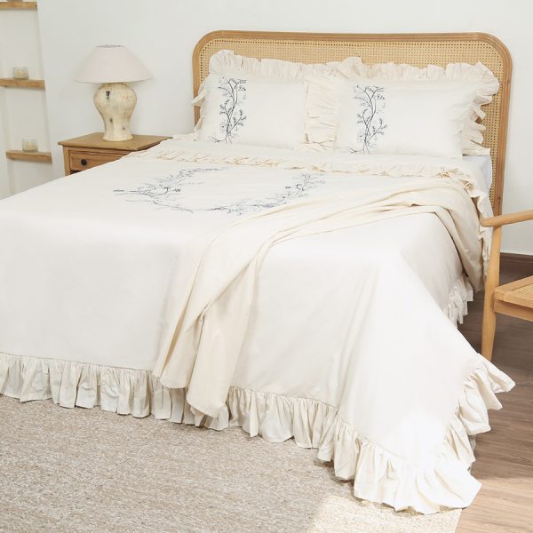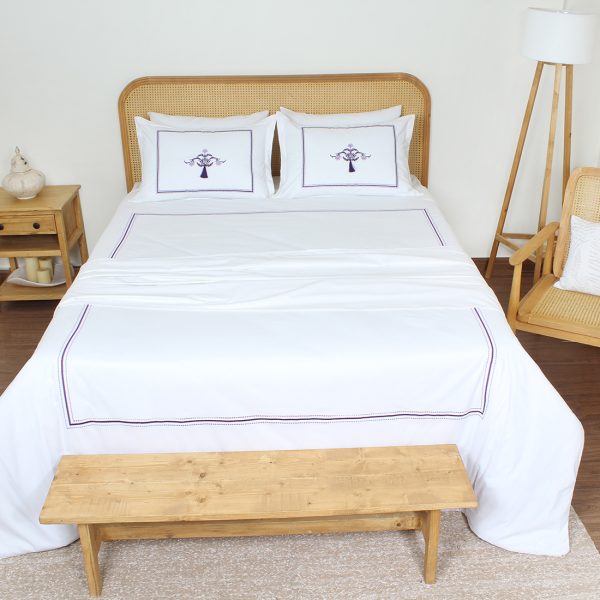 ست لحاف وکاور بزرگسال گلدوزی دو نفره هفت تکه بروجرد طرح ادوارد رنگ سفید