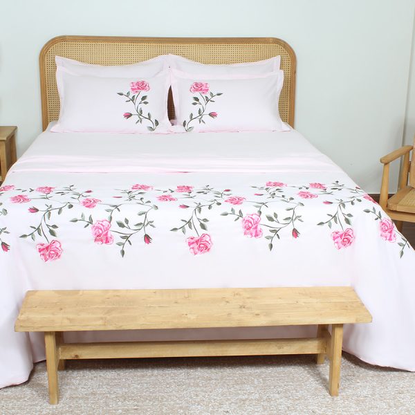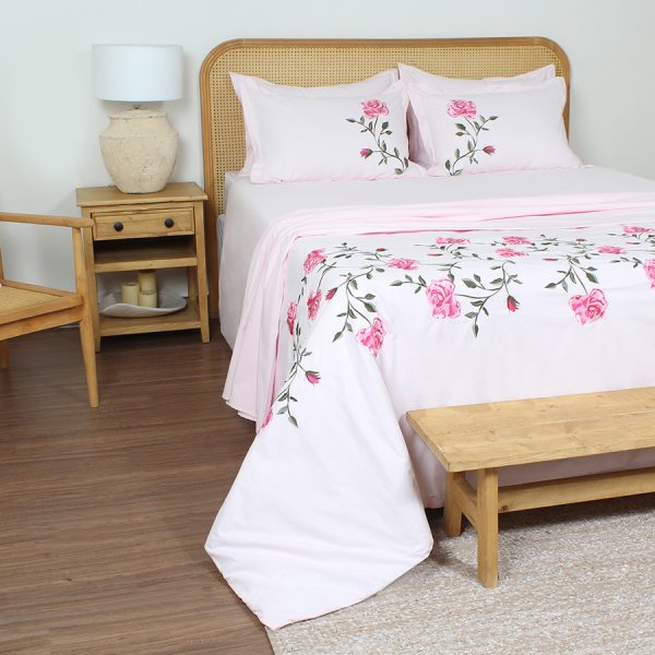 ست لحاف وکاور بزرگسال دو نفره هفت تکه بروجرد طرح اسپرینگ رنگ صورتی روشن