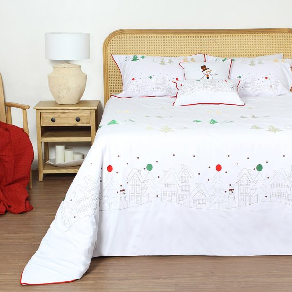 ست لحاف وکاور بزرگسال گلدوزی دو نفره نه تکه بروجرد طرح رودولف رنگ سفید