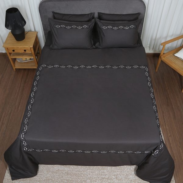 ست لحاف وکاور بزرگسال گلدوزی دو نفره هفت تکه بروجرد طرح پیردوپل رنگ طوسی روشن