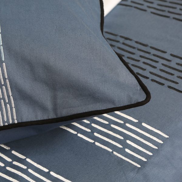 ست لحاف وکاور بزرگسال گلدوزی دو نفره هفت تکه بروجرد طرح لراتو رنگ آبی نفتی