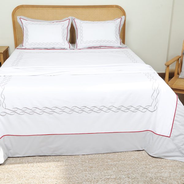 ست لحاف وکاور بزرگسال گلدوزی دو نفره هفت تکه بروجرد طرح لامبرت رنگ سفید