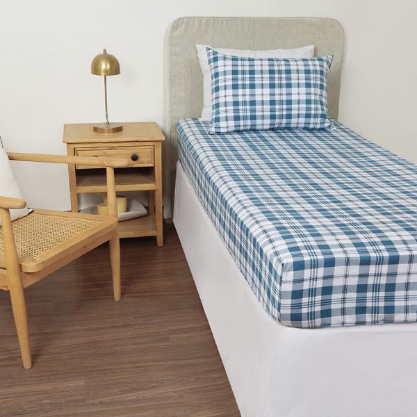 ملحفه نیم ست یک نفره دو تکه 90 بروجرد رنگ آبی نفتی